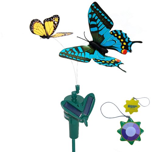 - HQRP® 2 Solar Flying Fluttering Butterflies (Yellow & Blue) Powered by Sun or AA Battery plus HQRP® UV Chain / UV Radiation Health Tester;