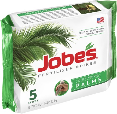 description: Jobe's® Fertilizer Spikes for Palm Trees,10-5-10, are specially formulated to provide these special plants the primary nutrients needed to enhance their beauty and promote growth. Unlike surface applied fertilizers that can wash away with rain or watering, Jobe's spikes work underground at the plants feeder roots to provide nourishment where it's needed. With no mixing or spreading necessary, the premeasured spikes make for a fast, easy and mess-free fertilizing experience. For best results, apply twice per year between March and October.