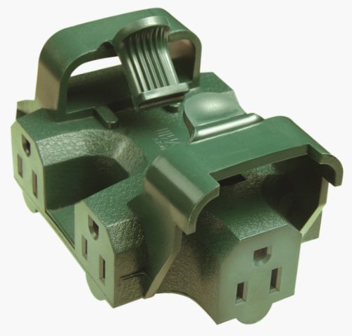 description: Yard Master 87362G Multi Outlet Plug Adapter, Indoor/Outdoor, Green. 125V -15A rated 3-prong grounded outlet adaptor. Features 2 cord locks, keeping cords secure and in place. Suitable for outdoor/indoor use, works great for DIY projects and construction sites. 5 outlet adapter converts a single outlet into 5 grounded outlets. Adapter outlets may be used with large transformers or standard sized plugs. Each outlet has 3-prongs, works great for most standard outdoor appliances. Reinforced blades help to prevent accidental bending or breaking. The 5-outlet adapter is perfect for holiday seasons, conveniently connecting your decorative lights. Yard Master (TM ) is a registered trademark of Coleman Cable Inc.